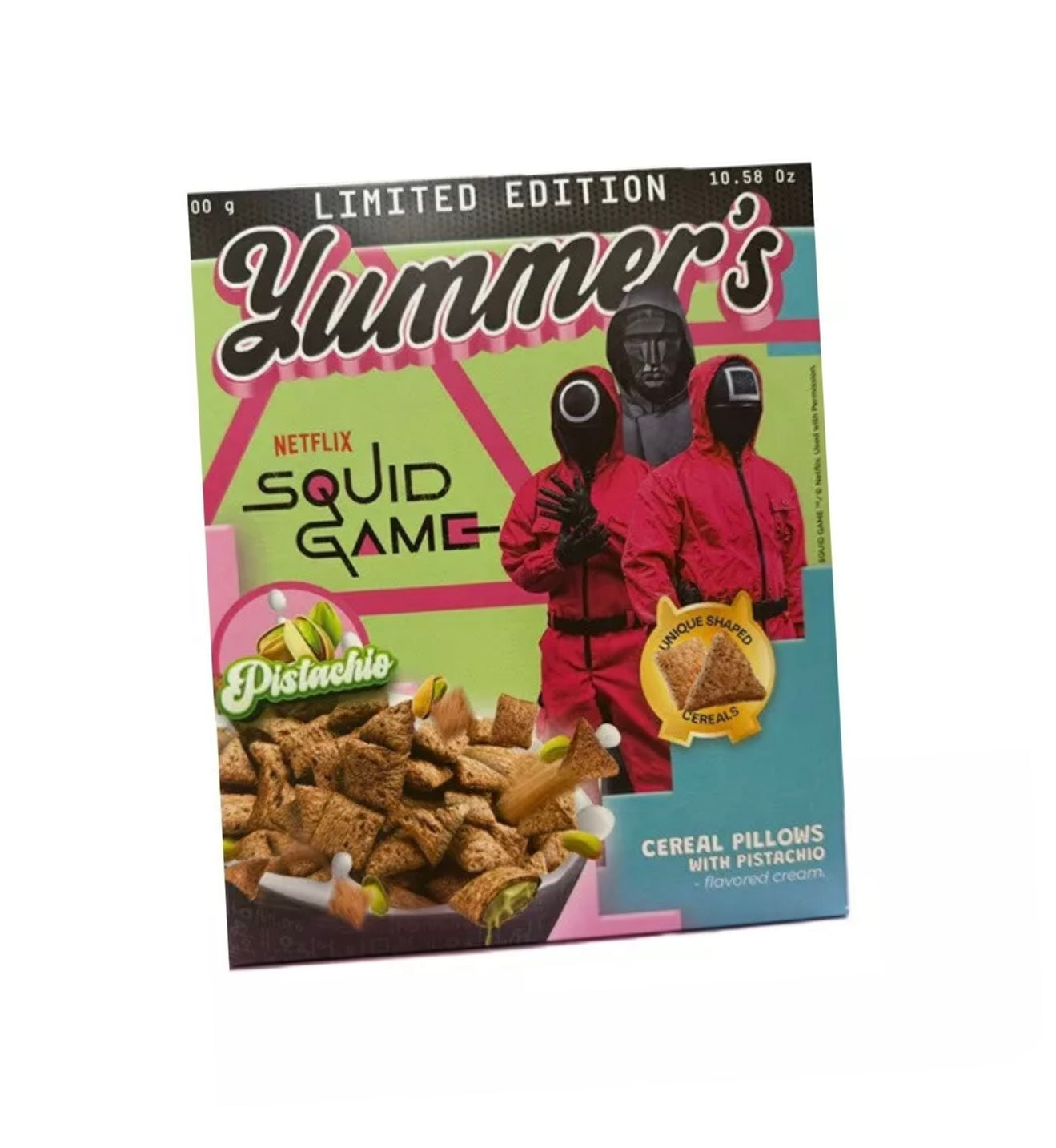 Découvrez les céréales Squid Game saveur Pistache signées Yummer’s 💚 Un goût surprenant, original et ultra gourmand, inspiré de l’univers culte de la série !