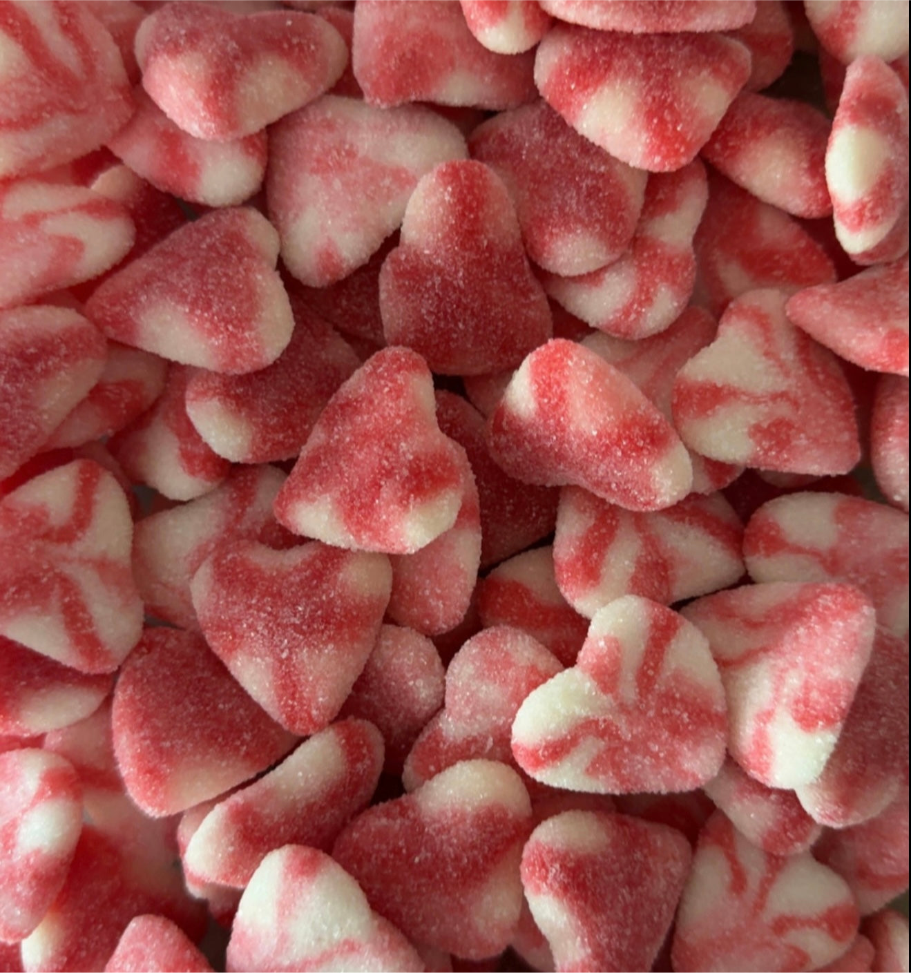 Savourez les délicieux bonbons cœur twist fraise crémeux et sucrés Halal... 💕