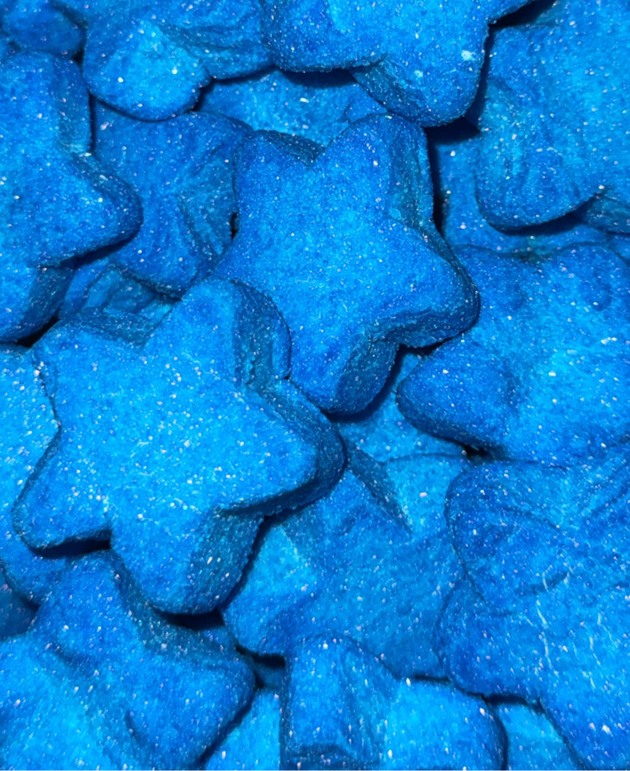 Laisse-toi emporter par la magie sucrée des marshmallows Étoile Bleue de Bulgari ! Leur forme étoilée et leur teinte bleu pastel rappellent un ciel rêveur, tandis que leur texture tendres, moelleux et ultra mignons..
