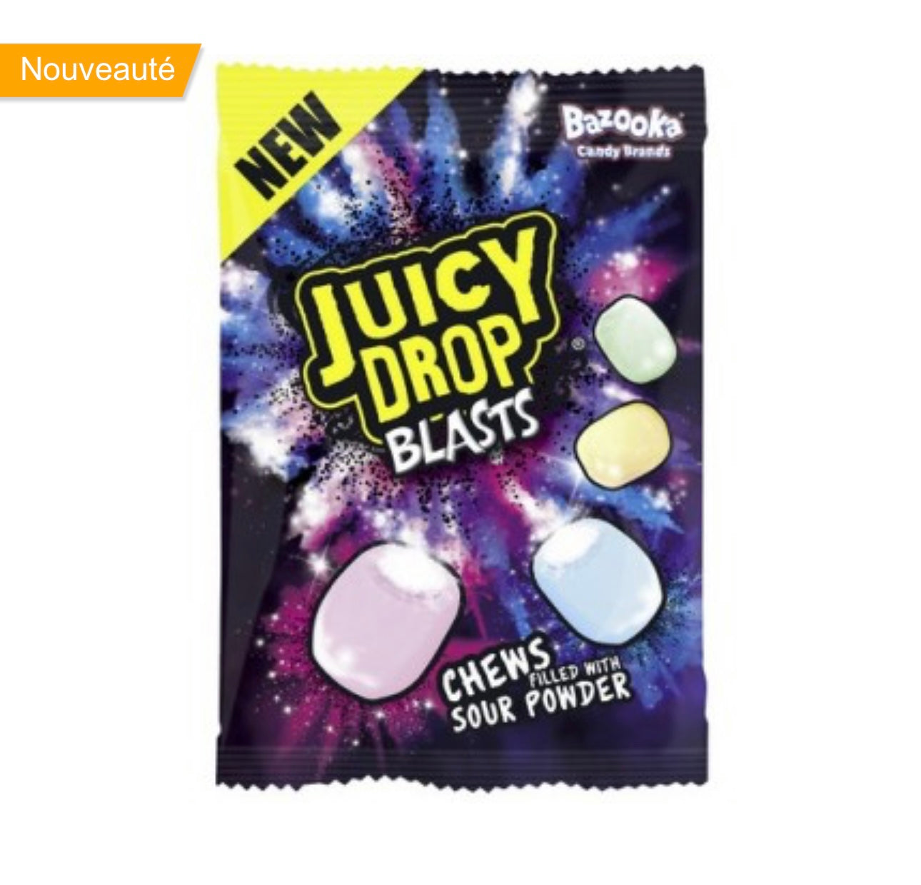 Idéal pour les amateurs de bonbons qui apprécient les sensations fortes et les saveurs vibrantes, Juicy Drop Blasts est parfait pour les moments de plaisir intense ou comme une petite friandise acidulée entre les repas ✨
