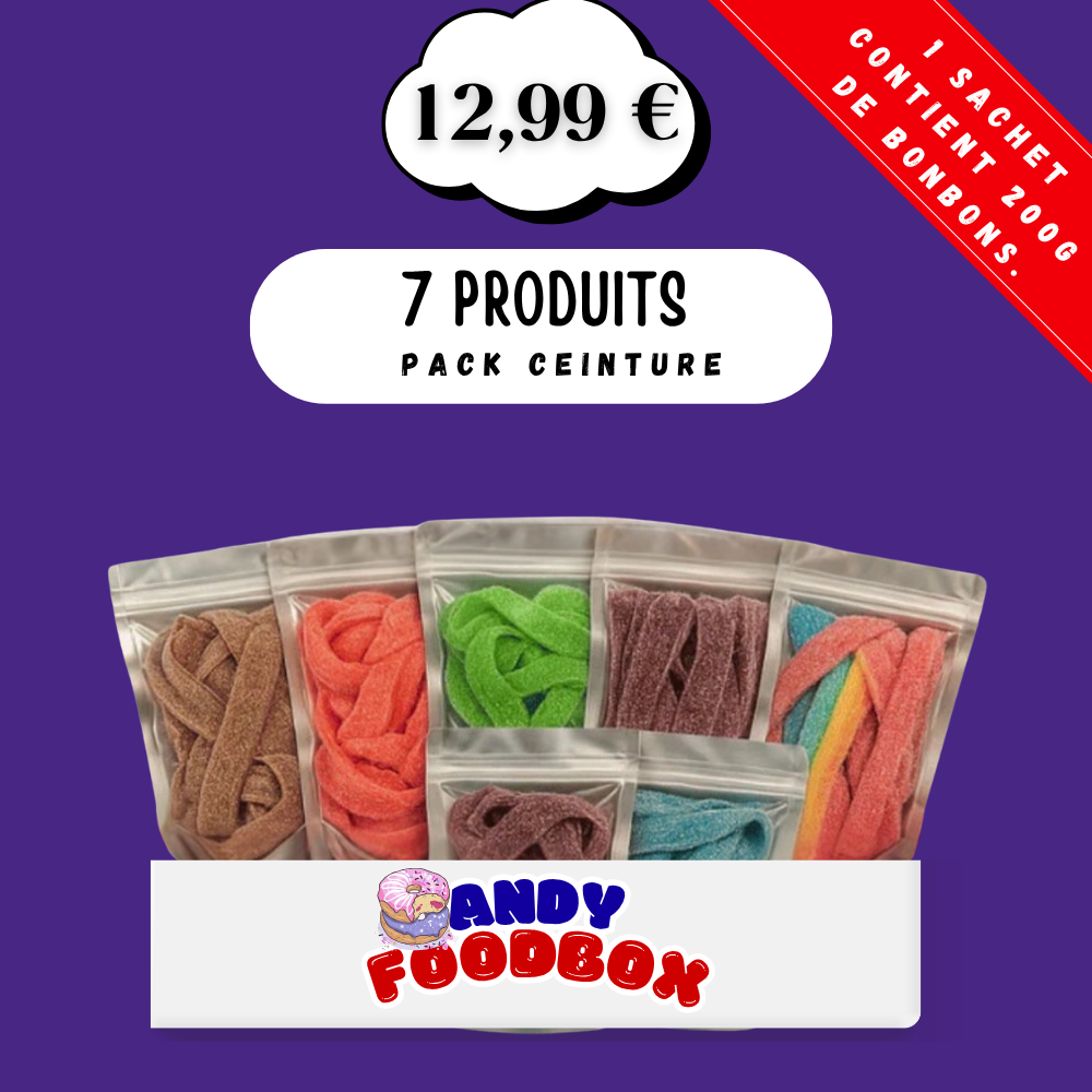Ce coffret réunit une sélection de bonbons ceintures aux couleurs arc-en-ciel, aux goûts fruités et acidulés, parfaits pour un maximum de fun.