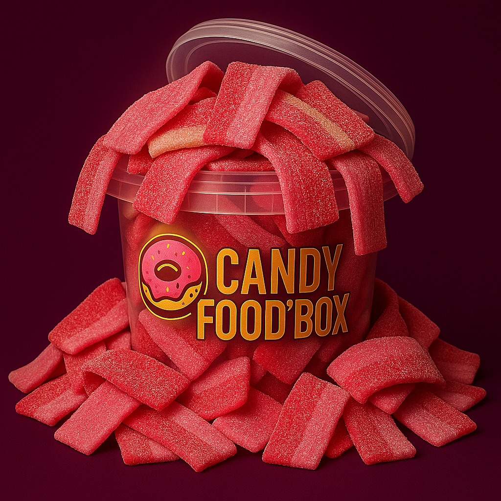 Un seau XXL de 1kg rempli de ceintures Ă la fraise ultra acidulĂ©es mĂ©langĂ©es Ă des ceintures fraise Ă la crĂšme dĂ©licieusement fondantesâŠ