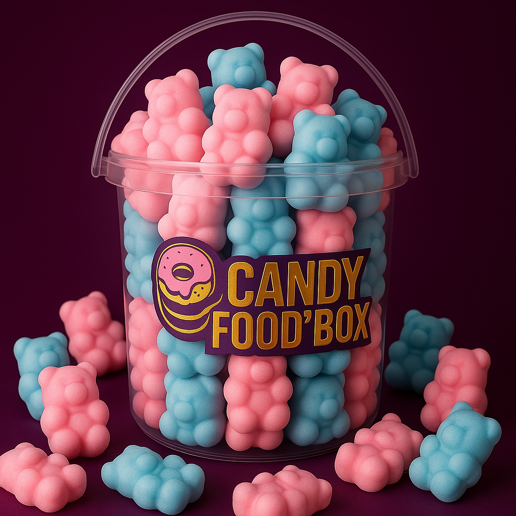Notre seau gourmand de 1kg regorge de petits oursons marshmallow ultra moelleux, aux couleurs rose et bleu pastel.