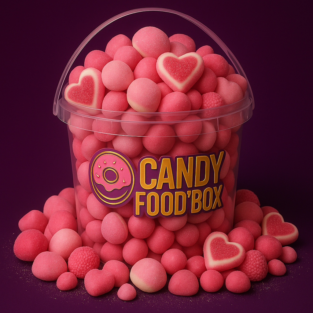 Découvrez notre seau exclusif de 1kg, rempli de bonbons roses moelleux, acidulés et fondants, spécialement sélectionnés pour Octobre Rose.