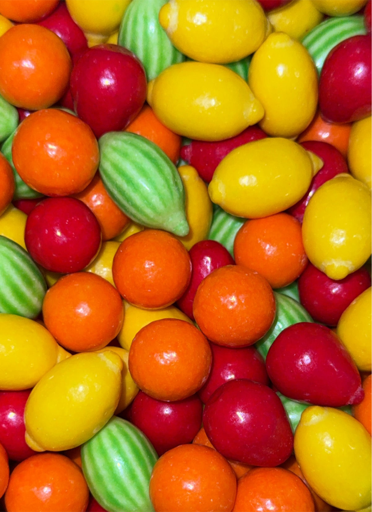 Melon 🍈, pastèque 🍉, citron 🍋, fraise 🍓… un cocktail de saveurs ultra punchy dans chaque boule de chewing-gum !