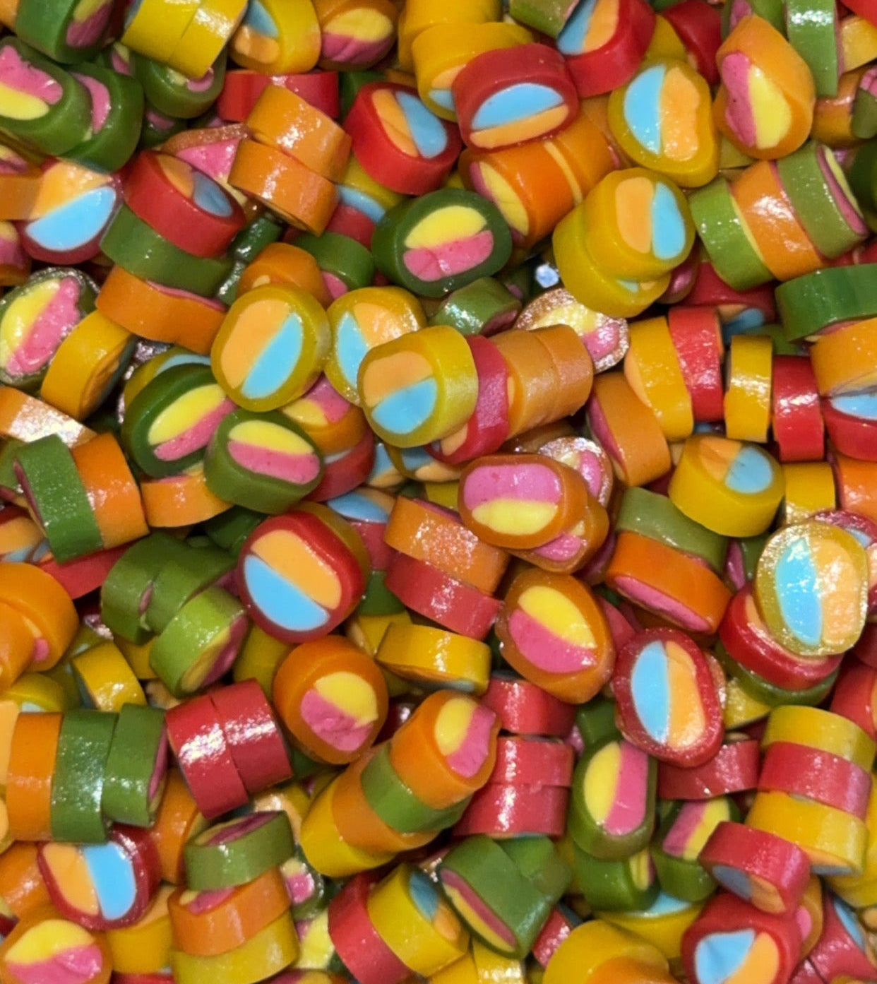 🌿 INGRÉDIENTS : Sucre, sirop de glucose, amidon de maïs, amidon de pomme de terre, gélatine, acidifiants (acide citrique, acide malique), arômes, concentrés de fruits et plantes, colorants (E100, E120, E133, E141).