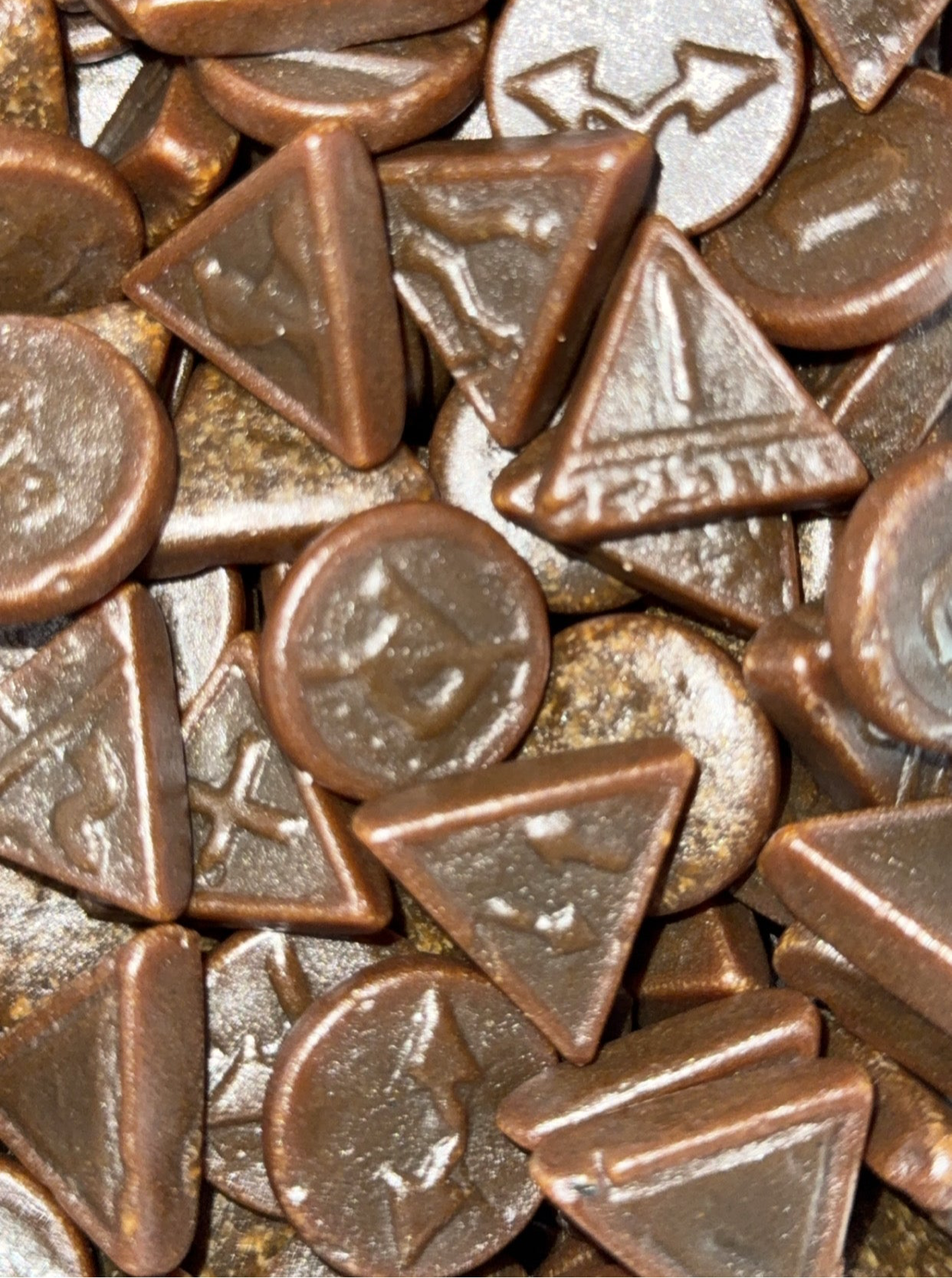 INGRÉDIENTS : Sirop de glucose, sucre, amidon modifié, réglisse, gélatine alimentaire, additif, arôme, colorant: charbon végetal, caramel. Agent d'enrobage: huile végétal coco, cire d'abeille.
