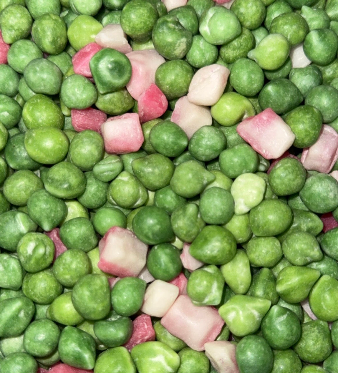 L’assortiment bonbon Petit Pois au Lard ressemble à s’y méprendre à un plat salé : Des petits pois verts accompagnés de lard sucré, pour une expérience aussi surprenante que délicieuse.. 🥓🫛