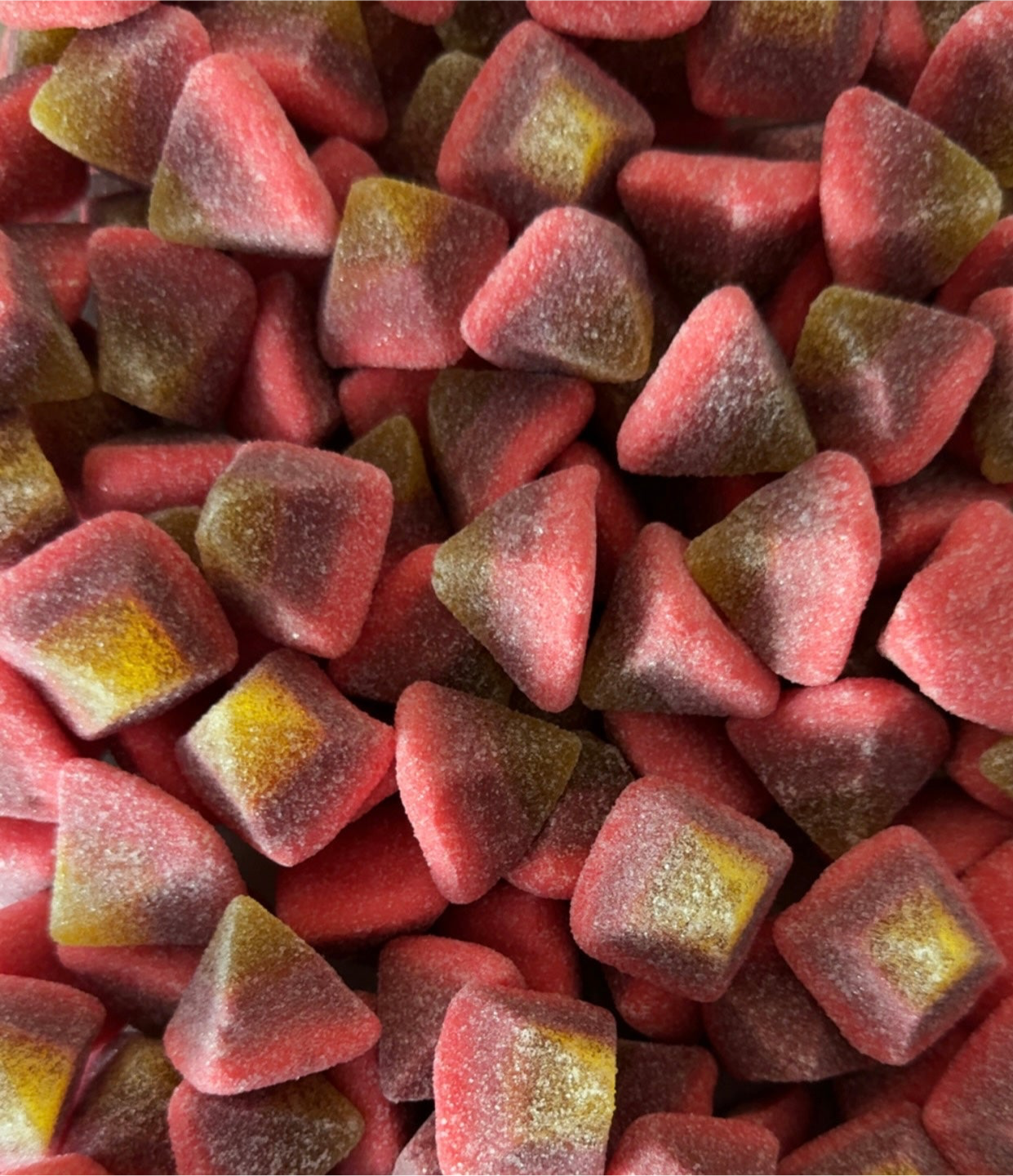Bonbon fruitĂ© en forme de pyramide, enrobĂ© de sucre.. Une explosion de saveurs fruitĂ©es Ă chaque bouchĂ©e ! Un plaisir gourmand Ă savourer quand vous voulez..Â
